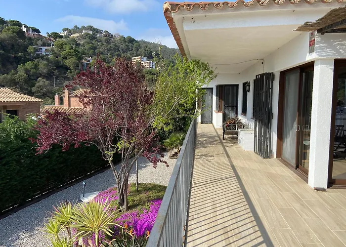 La Villa Casa Namar - Costa Brava Lloret de Mar, situada a 3 km de la Cala Llebadó, ofrece una terraza con vistas a las montañas. La casa de vacaciones cuenta con una piscina y se encuentra a unos 10 minutos en coche de la Iglesia de Sant Roma.